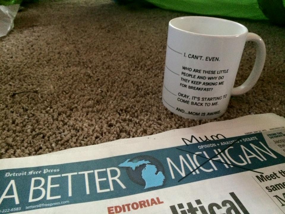 The latest F-bomb came yesterday. The boys and I had journeyed to Ann Arbor in the morning to visit the Hands-On Museum. I was proud of myself for prepping lunch ahead of time for Keats to eat en route home and for successfully using the facilities myself at the museum with Wren strapped into the Ergo carrier. SuperMum or what?! We\’d had a great morning, with synchronized crying thankfully holding off until we were only twenty minutes from home. Their crying, not mine.