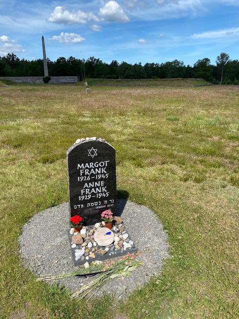 I visited Dachau years ago, a solemn memorial site where the guards’ towers, fence, sleeping quarters, and ovens remain. I knew that Bergen would be different. With its absence of buildings, I expected a ghostly and dark atmosphere. Instead, it felt, surprisingly, both devastating and light. There’s sad comfort in knowing that the named and unnamed prisoners haven’t been forgotten.